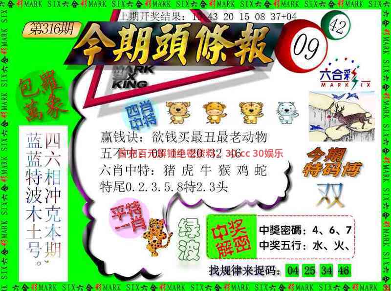 | 315期:稳赚七肖【鸡鼠牛虎蛇马狗】开:虎04对 |